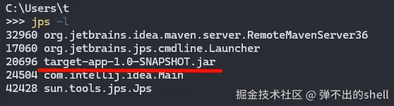 jps -l 查找一下 Tomcat 的 pid: