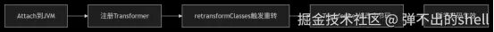 Agent 拿到 JVM 给的 Instrumentation 对象 → 调用 retransformClasses → JVM 允许你替换内存中这个类的方法字节码 → 新逻辑生效。