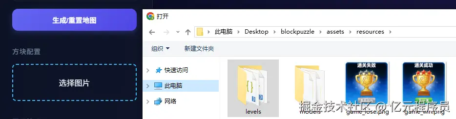 为了简单编辑到预览的流程,笔者将图片数据也放到了关卡配置里面,整个游戏只需要这么一张图片即可。