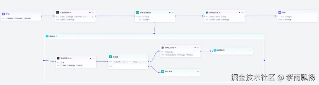 该节点的作用是根据开始节点输入的提示词生成视频;