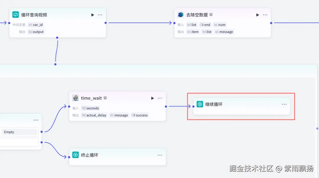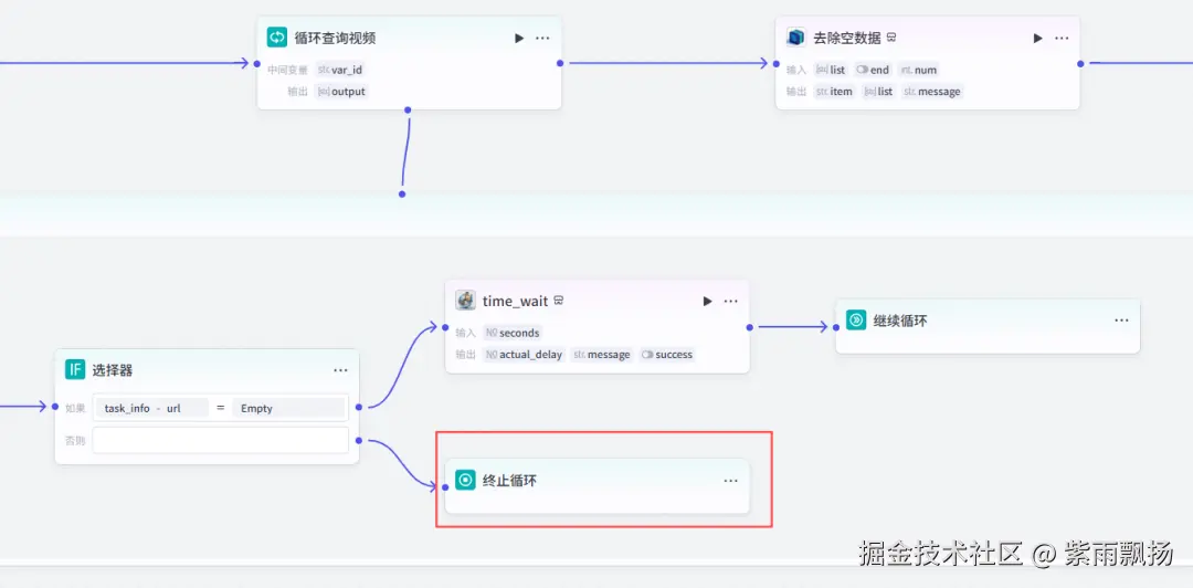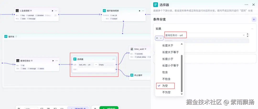 ②如果不为空,也就是已经查询到了视频生成,就走下面的节点,终止循环。