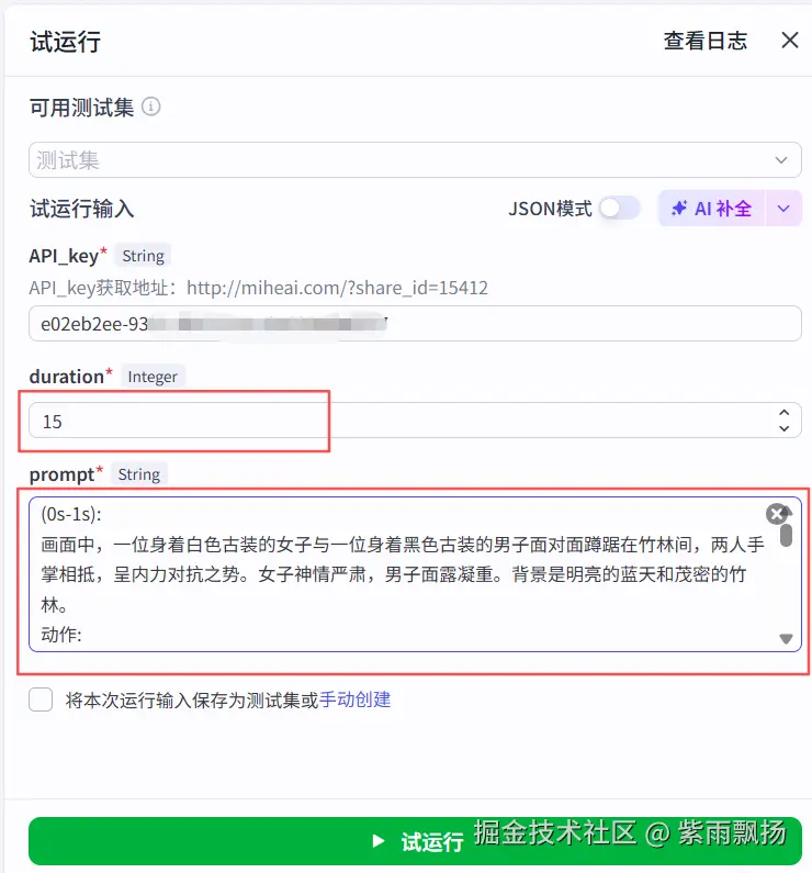 (1)点击试运行,按要求输入参数,带星号的是必填。