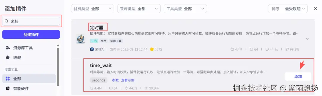 为了避免不停地去查询,增加第三方的米核的【定时器】的 【time_wait】 节点**->设置参数**