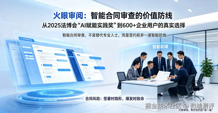 从2025法博会“AI赋能实践奖”到600+企业用户的真实选择,火眼审阅正在用技术和实践证明一件事:智能合同审查的价值,不在于替代专业人士,而在于让每一份合同在签约前都多一道智能防线。