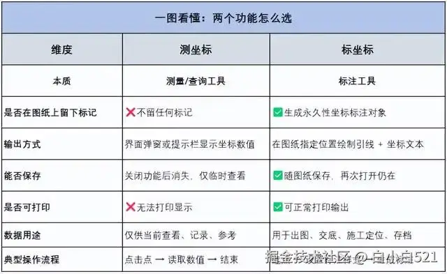 【标坐标】:通常是给别人看,永久留,标注在图纸上。