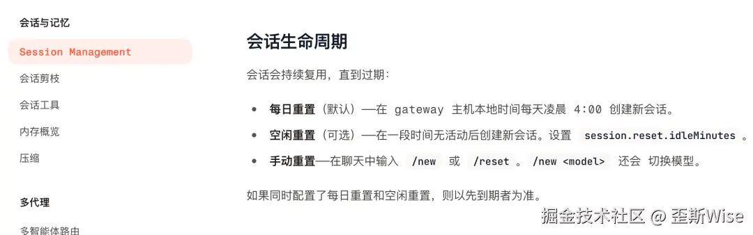 但 Openclaw 的会话重置没有像 Claude Code 那样更强调工作集恢复。