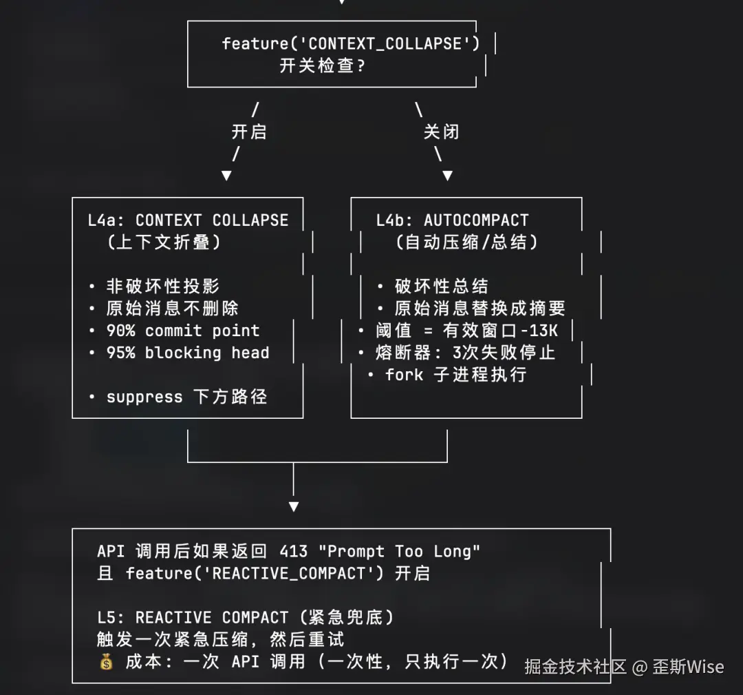 再往后,才会进入更重的上下文折叠或自动压缩。前者更像把全文换成摘要继续工作,后者则意味着对旧上下文做更激进的取舍。