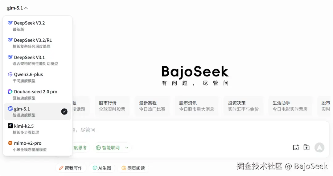 没有绝对万能的 AI,只有最适合当前任务的“最强大脑”。不需要下载四五个 APP,不需要注册繁杂的账号。在 BajoSeek 极简的对话框里,我们已为你集齐了全网最顶尖的旗舰模型矩阵: