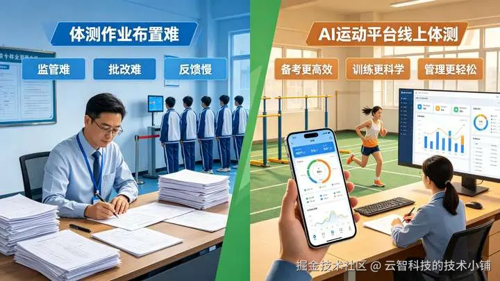 中考体测临近,学生体能参差不齐、假期训练无人监管、作业批改统计繁琐…… 每到备考关键期,体育老师便压力倍增。传统体测作业布置难、监管难、批改难、反馈慢,已成为影响备考效率的最大阻碍。AI 运动平台,用科技破解中考体测作业全流程痛点,让备考更高效、训练更科学、管理更轻松。