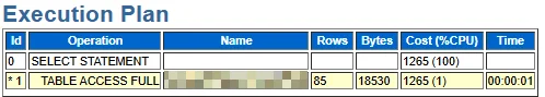|* 2 | INDEX RANGE SCAN| IDX_XXXXXX_XXX | 1 | 33 | 3 (0)| 00:00:01 |
