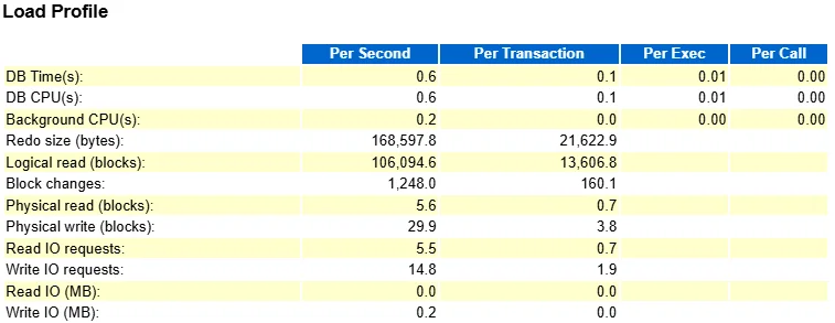 随后,我创建了联合索引之后,晚上抓了一个 AWR 报告看了下数据库性能: