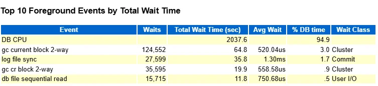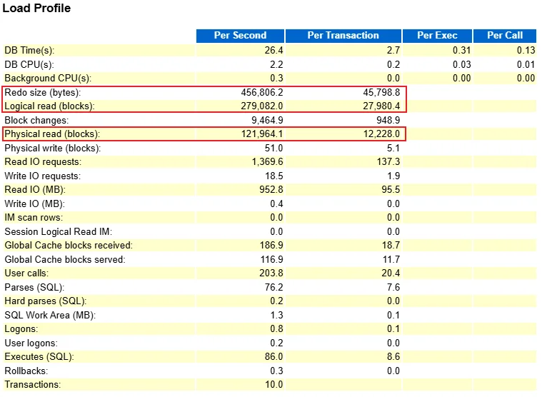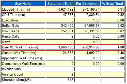 虽然表面问题已解决,但我进一步采集了 AWR 报告进行深入分析,结果发现了更严重的性能问题。