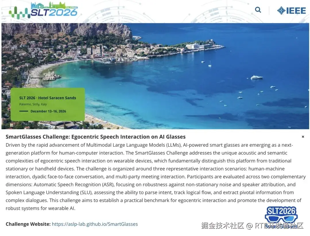 1、IEEE SLT 2026 SmartGlasses 挑战赛盛大开启!聚焦第一视角下的真实社交语音交互