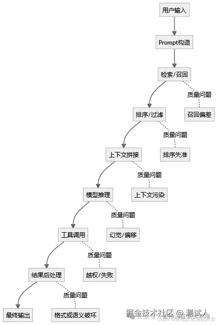 比如一个 AI 问答系统回答错了,你至少要追到这几层: