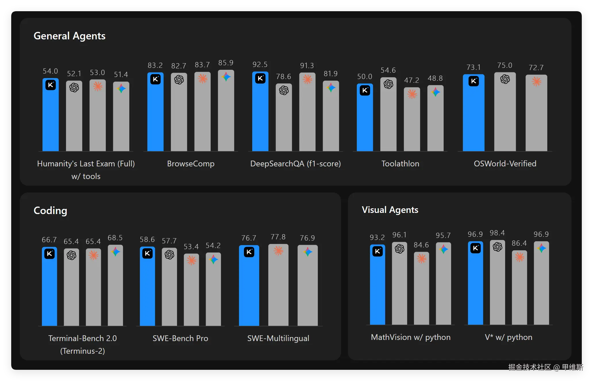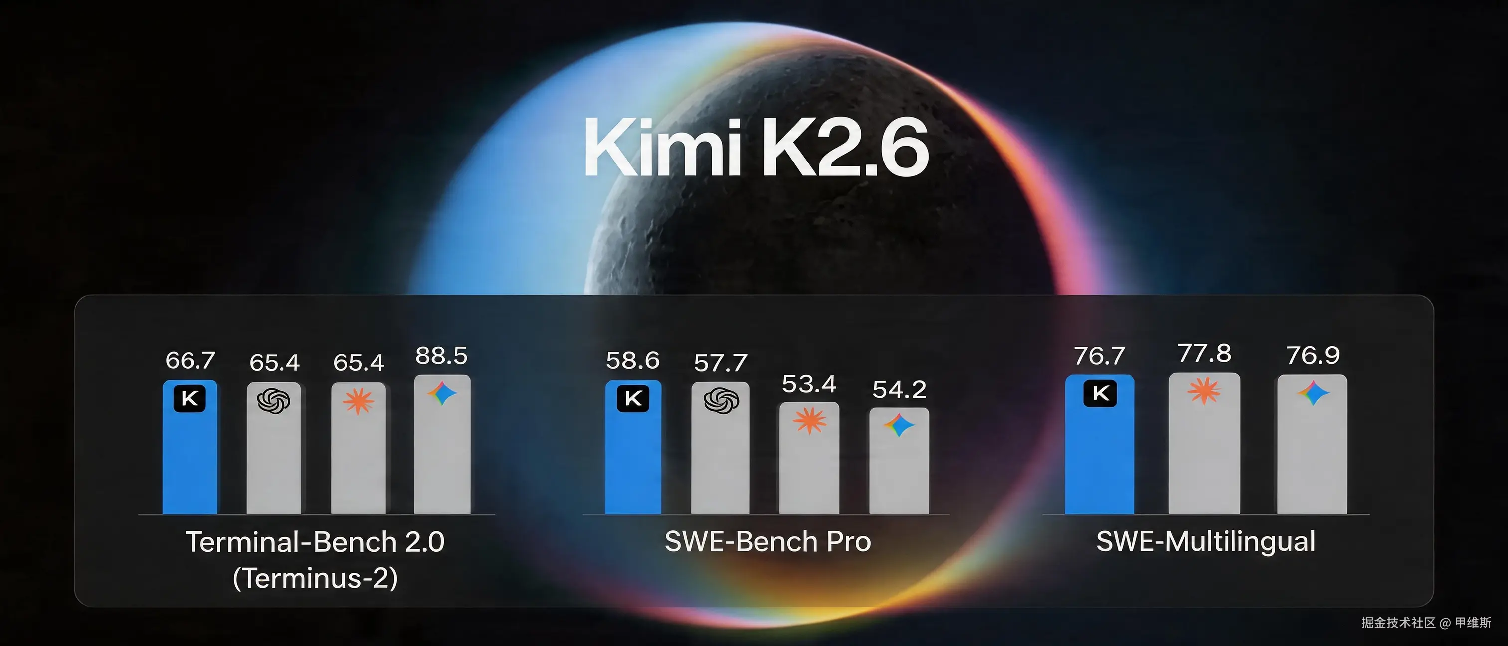 据官方介绍,Kimi K2.6 在上述各类别中均表现优异,展现出强劲的综合竞争力。