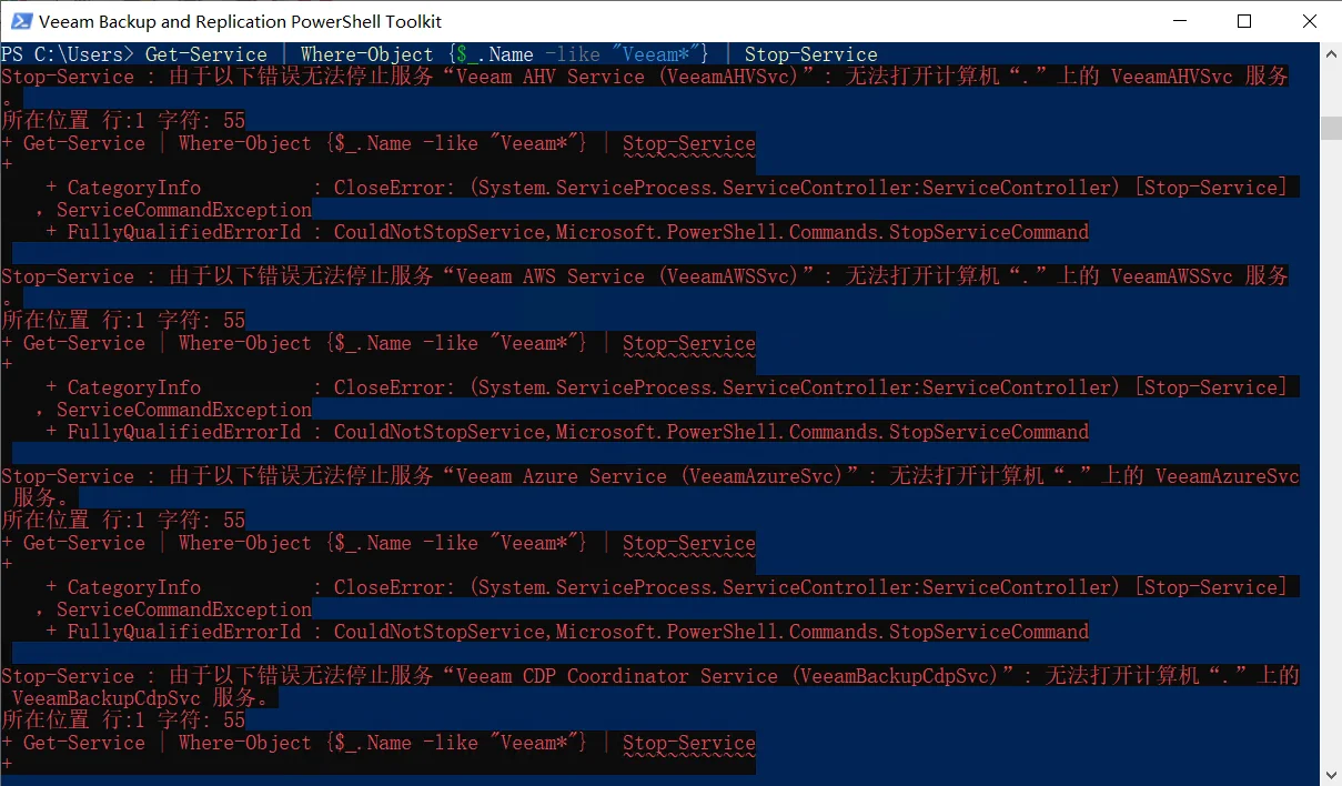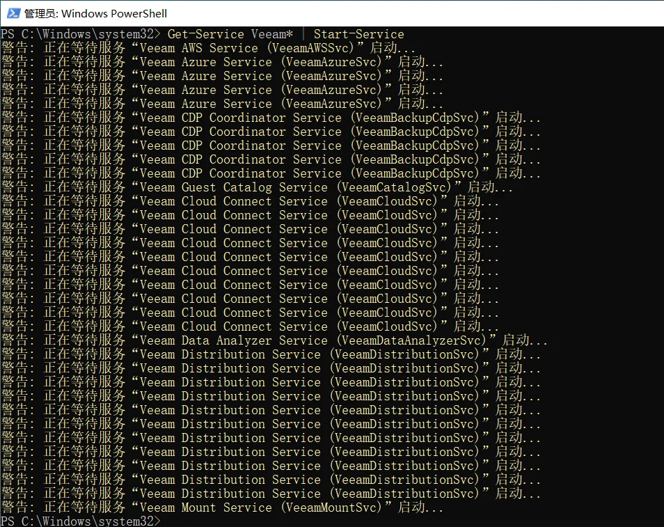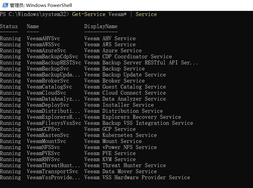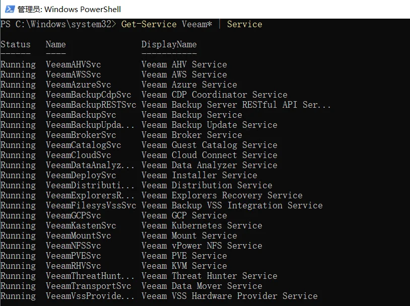 今天咨询了一下服务人员,说是要重启一下 Veeam 服务进行释放,本文记录一下如何使用 Powershell 命令行快速安全的重启 Veeam 服务。