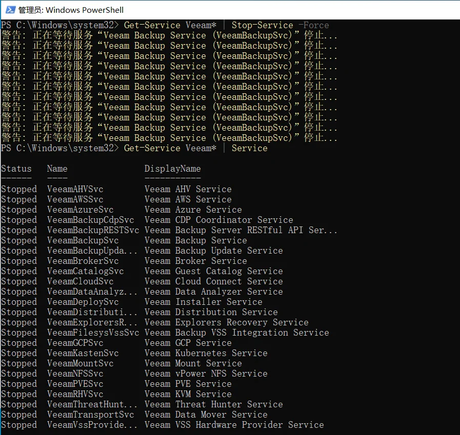 Get-Service Veeam* | Stop-Service -Force