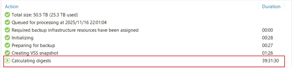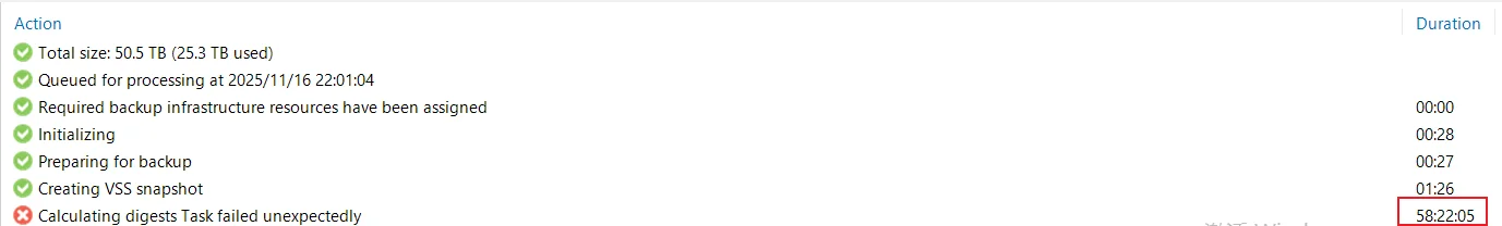 重新打开 VBR 控制台,检查刚刚卡住的备份任务: