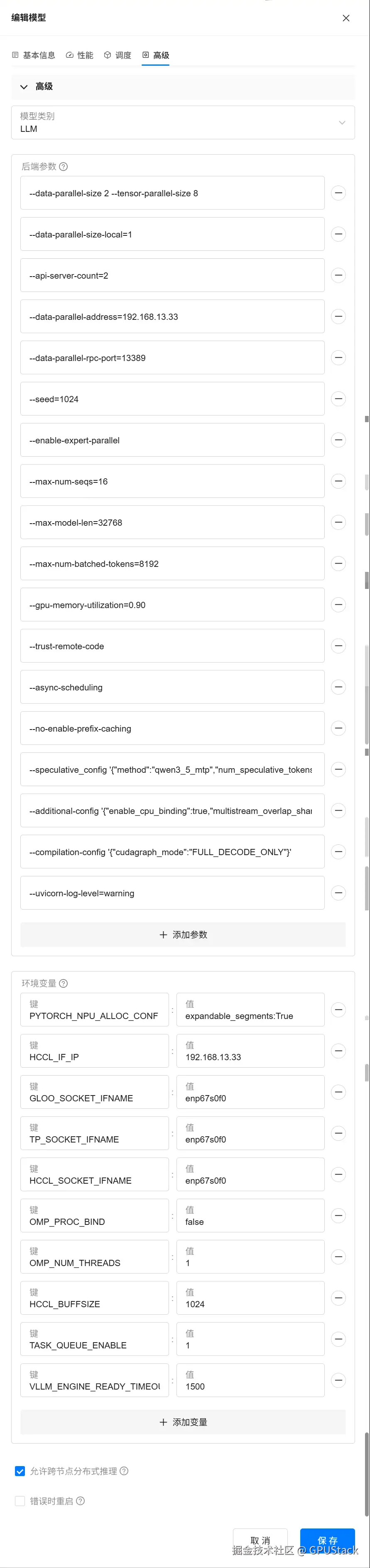 VLLM_ENGINE_READY_TIMEOUT_S=1500 # vLLM 引擎启动的超时时间(秒),多节点大模型加载耗时较长,需适当调大(此处设为 25 分钟)