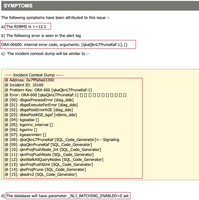 ORA-00600:[qkaQknLTPruneKaf:1] WHEN _NLJ_BATCHING_ENABLED=0 ON ORACLE 12C (Doc ID 2067672.1)
