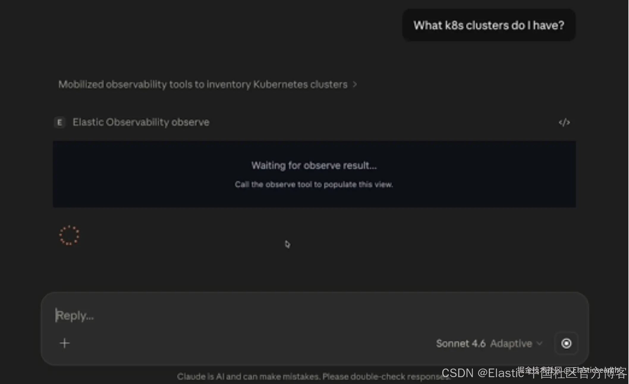 第三个参考应用 Elastic Observability MCP App 解决的是同一种“形态问题”的 SRE 版本。当生产环境出现故障时,值班工程师真正需要的答案不是一张图表,而是一个由 K8s 指标、APM 拓扑、机器学习异常检测和风险评估拼接而成的诊断结果。