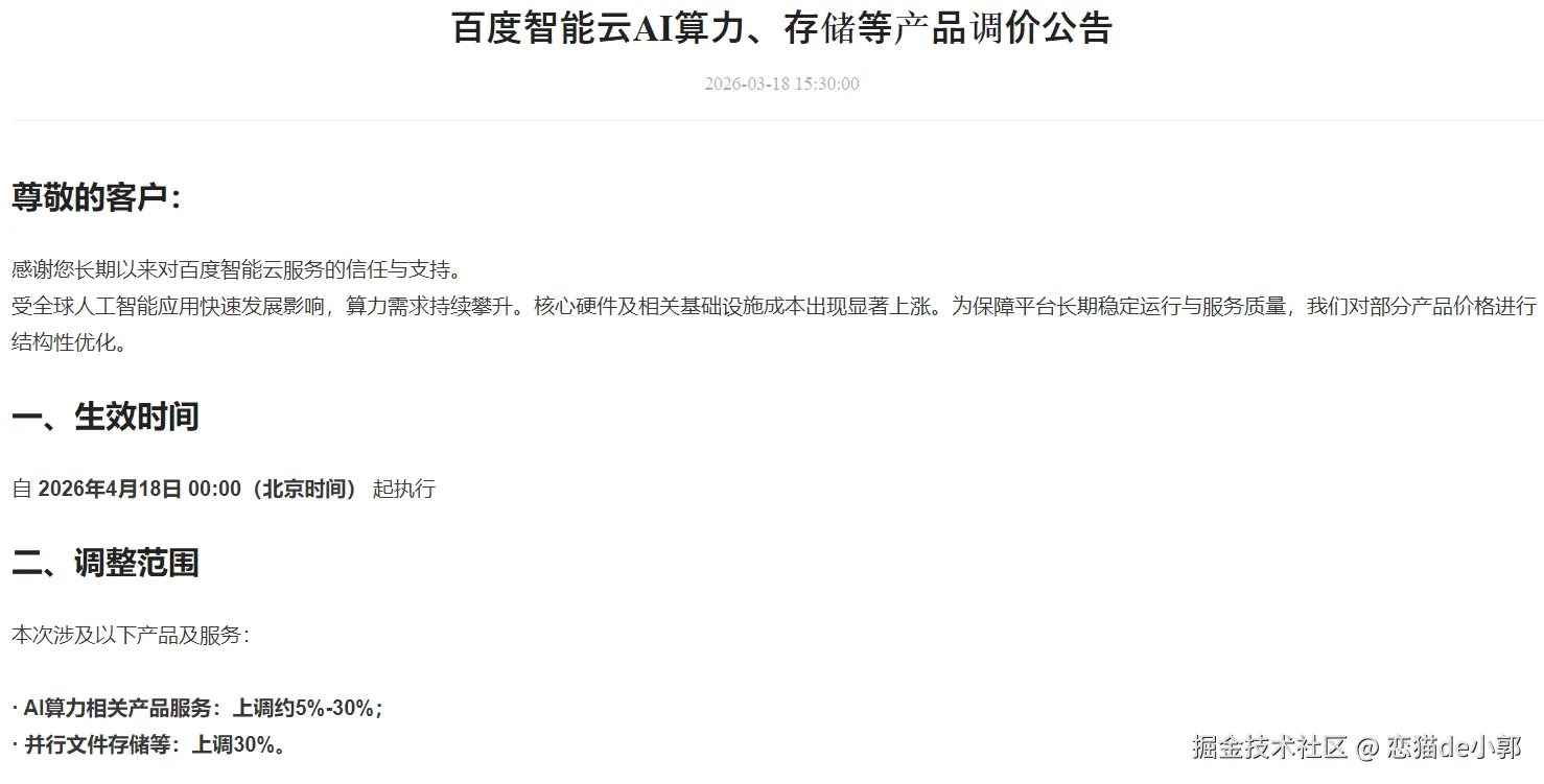 - 百度智能云 AI算力产品涨 5%-30%