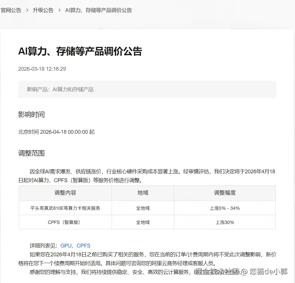 而事实也不只是订阅商家,算力产品和按量计费这段时间也在涨价: