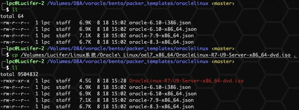 将系统镜像文件拷贝至 bento/packer_templates/oraclelinux 目录下: