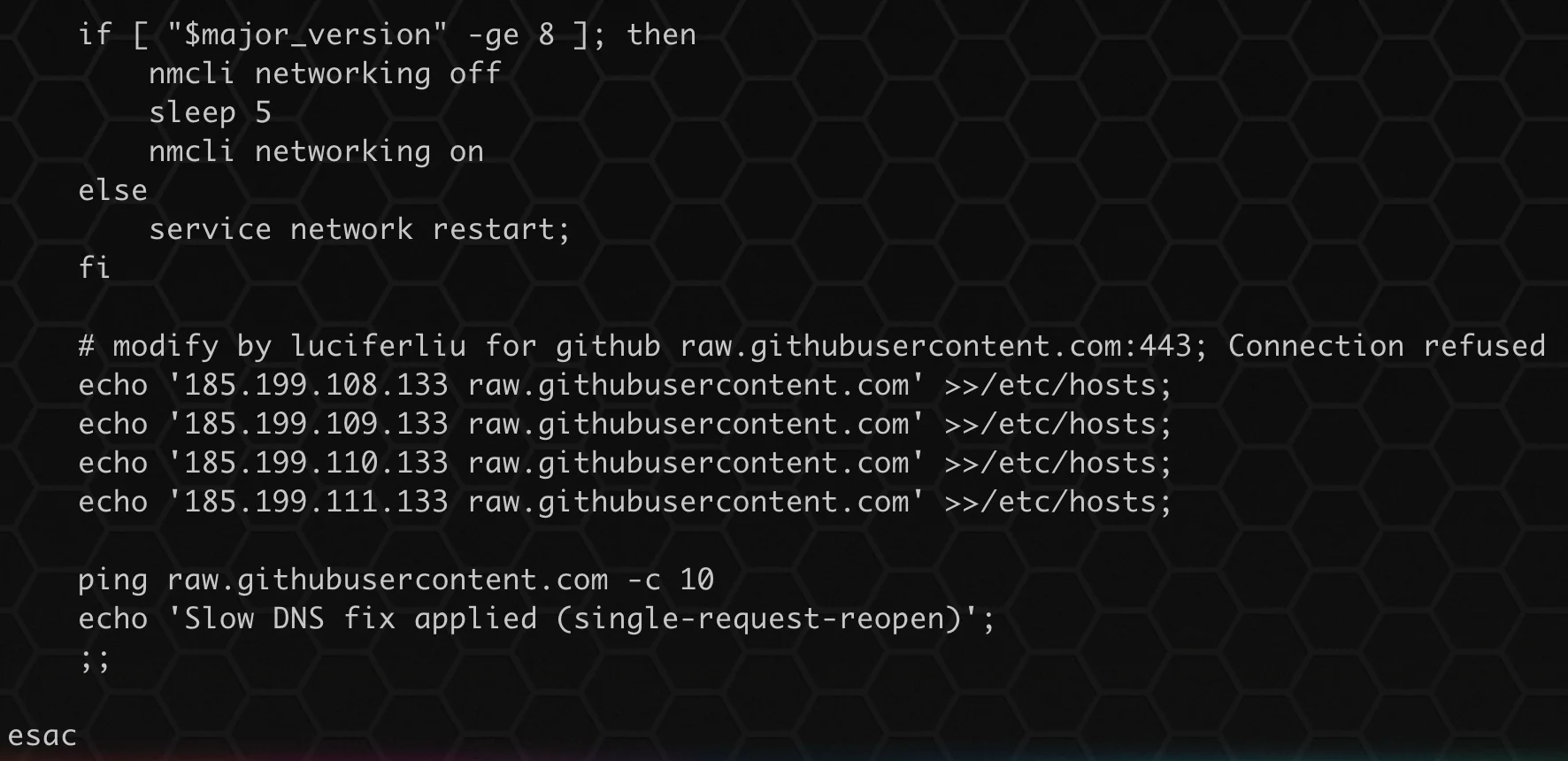 echo '185.199.111.133 raw.githubusercontent.com' >>/etc/hosts;