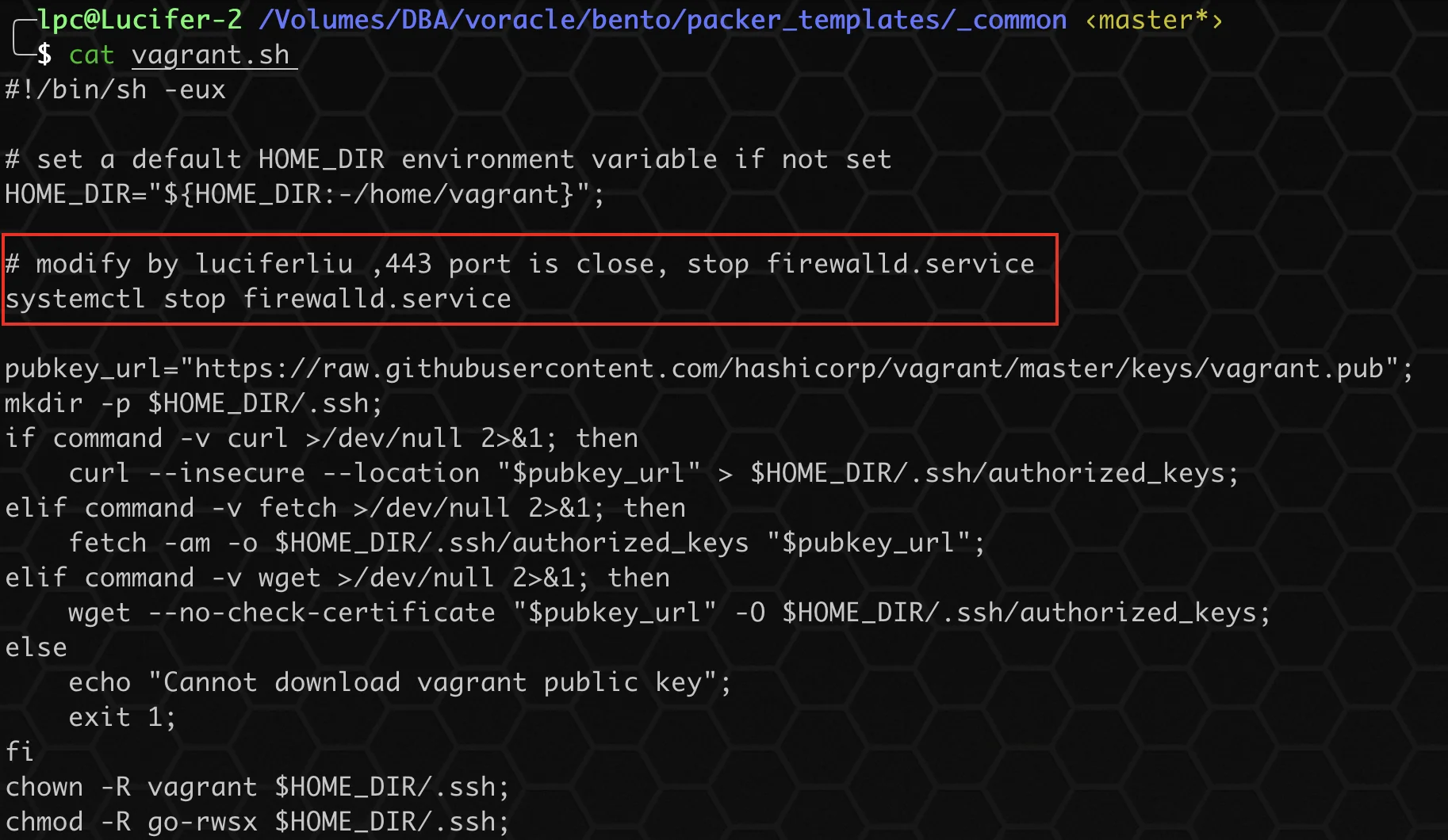 脚本位于 bento/packer_templates/_common 目录下,由于未关闭防火墙,443端口无法访问,因此一直报错,手动关闭防火墙: