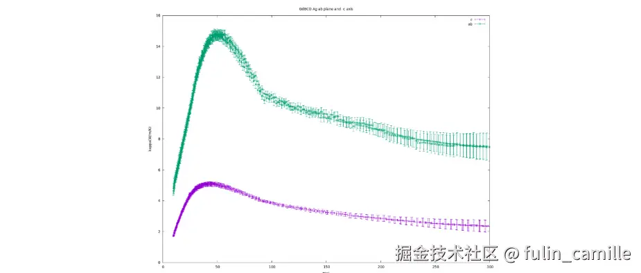 图 5:GdBCO/Ag 在 c 轴(紫色)与 a/b 面(绿色)方向的热导率