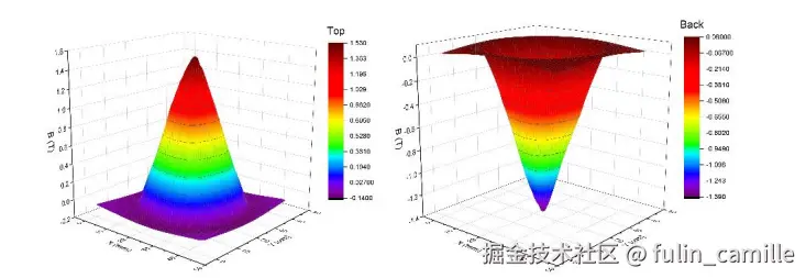 图 1 :捕获磁场分布示例(GdBCO/Ag,直径 35 mm) EuBCO/Ag(距表面约 1–2 mm;77 K))