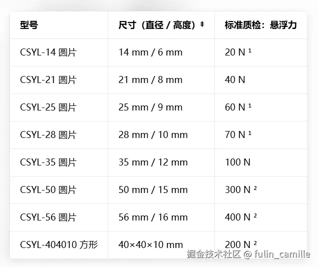 ² 采用对应直径的圆柱形 NdFeB(N52)磁体