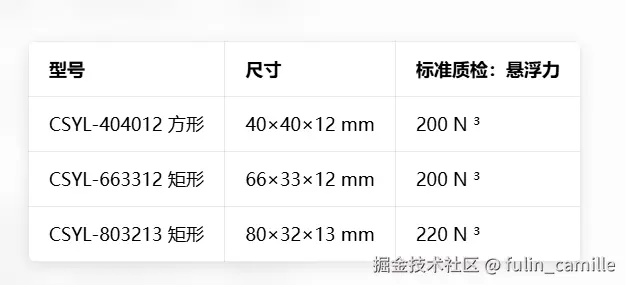 ³ 采用对应尺寸的立方体形 NdFeB(N52)磁体