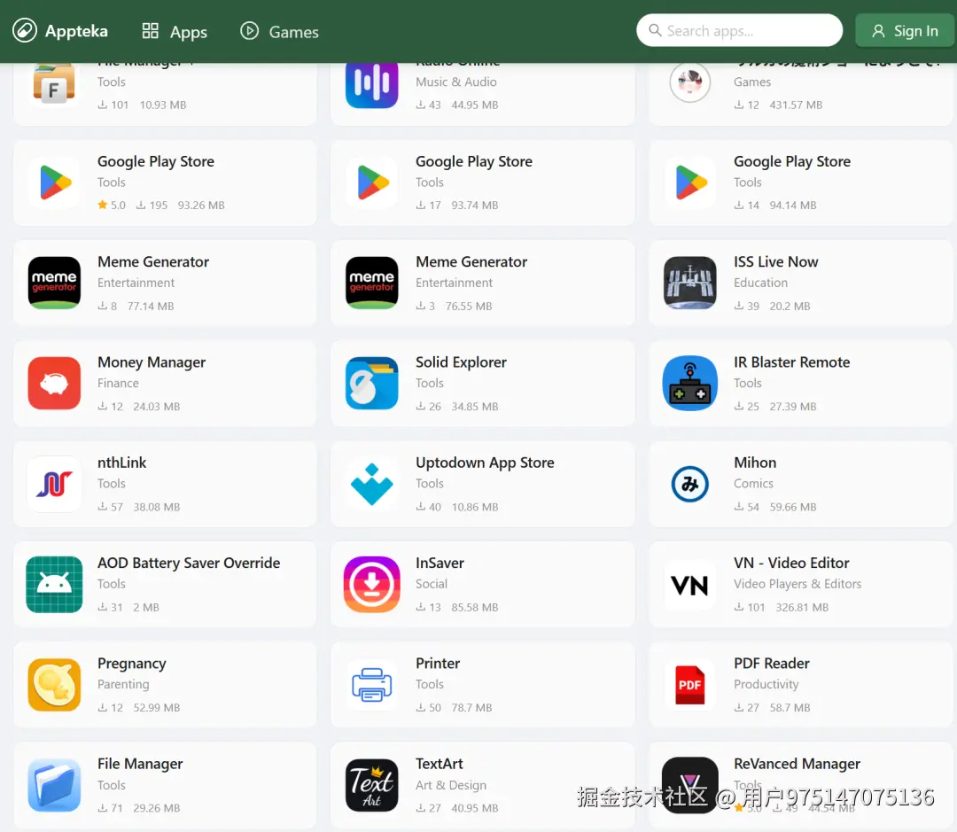 平台收录的应用资源还是比较多的,基本上只要是Google Play里能搜到的主流应用,这里基本都能找到对应的APK安装包。