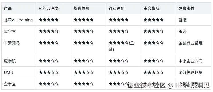 聚焦核心场景的选型逻辑是:先识别企业最痛的1-2个培训问题(如销售技能提升困难),再选择在该场景AI能力最成熟的产品(如北森AI陪练),而非选择功能最全但核心场景一般的产品。
