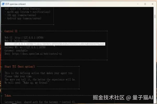 全部配置完成以后,在 Powershell 里找到 Control UI 选项,在其底部即可看到 OpenClaw 前台控制面板的链接地址