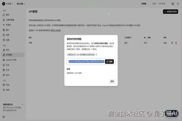 配置OpenAI 的密钥,如果你没有的话可以自己创建
