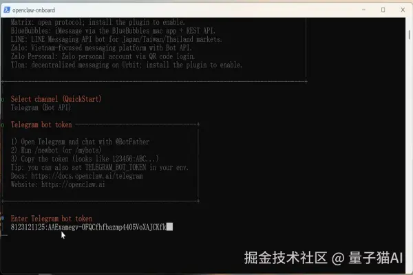 输入 token 进行对接,并进入到刚才创建的机器人里,第一次打开会显示还未正式对接,但是会在里面提供配对码,