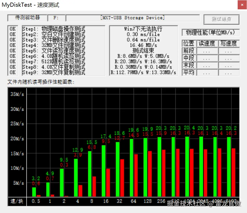 32KB 随机读取约 18.6 MB/s,写入约 12.7 MB/s。