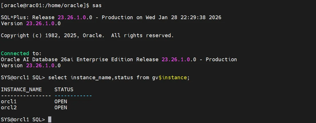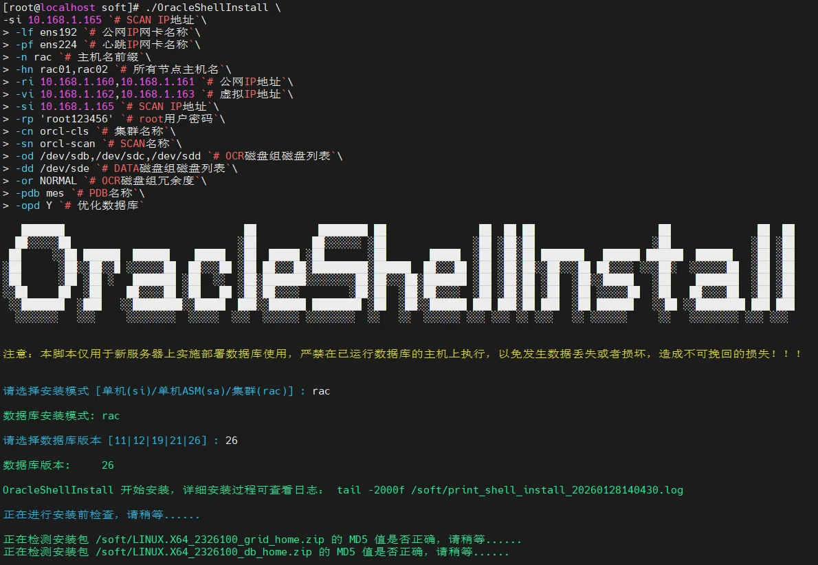 我这次是先手动安装了一次 26ai rac 之后再去适配安装脚本,这样对一些坑有数了才能更顺利的修改脚本,所以还是建议大家可以都先动手一步步的去安装一次体验一下 26ai 数据库的一些变化。