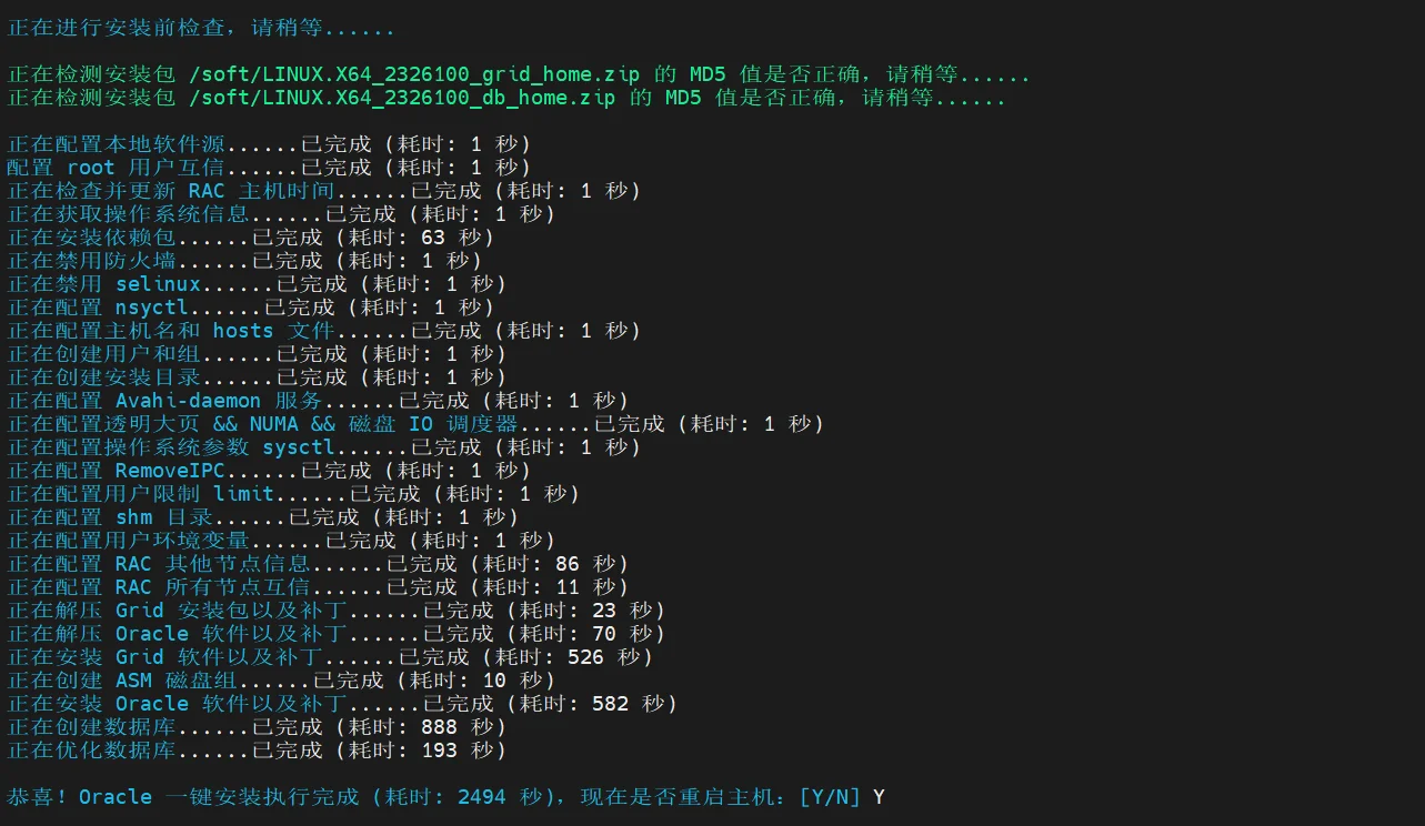 花费半小时修复了以上的问题,下面演示一下 Oracle AI Database 26ai RAC 一键安装。