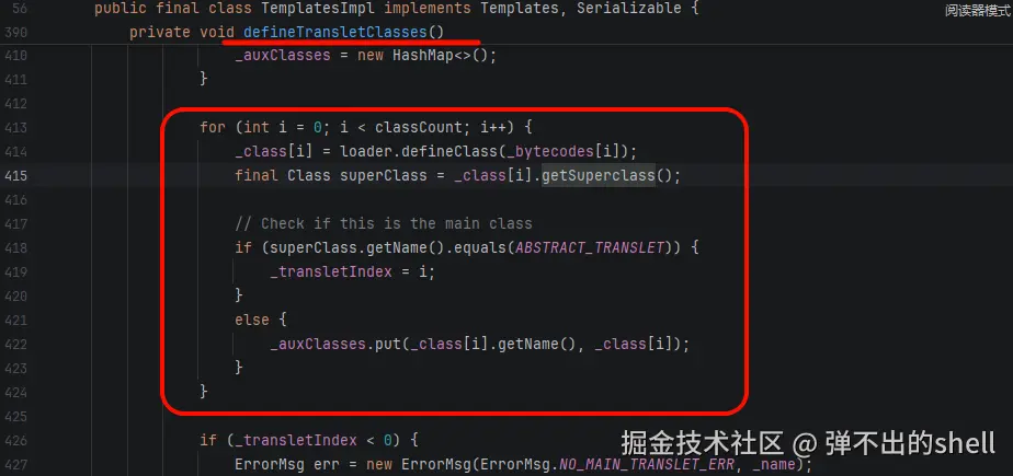 - TemplatesImpl 充当字节码加载器,还原恶意类并触发构造函数