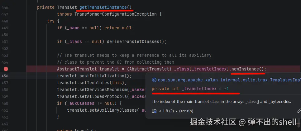 TemplatesImpl 加载的类必须继承 AbstractTranslet,否则 newTransformer() 调用会抛异常,后续构造函数根本不会执行。确认注入器类 extends AbstractTranslet,且两个抽象方法都实现了。
