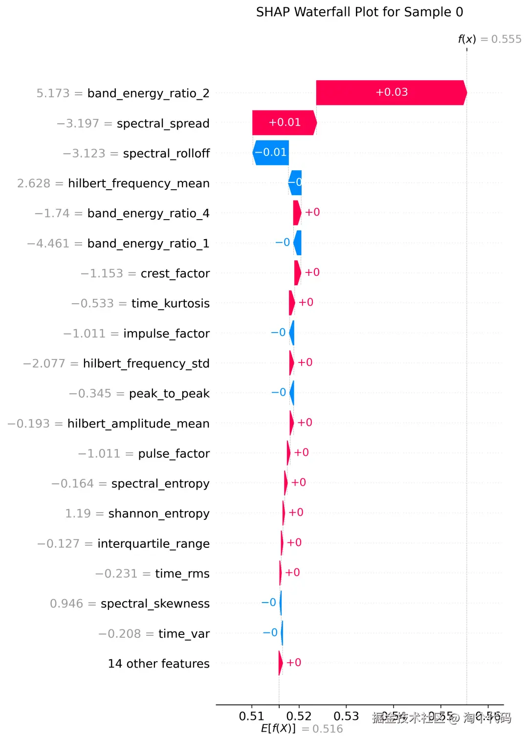 频域特征(15 个):Hilbert 包络特征、频谱重心、频谱扩展、频谱熵、主频、四个频段能量占比等