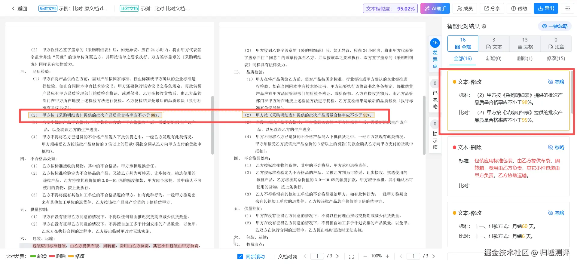 3.零门槛易操作:无需复杂专业培训,双屏同步展示差异内容,支持一键导出标准化比对报告,非专业背景也能快速上手;