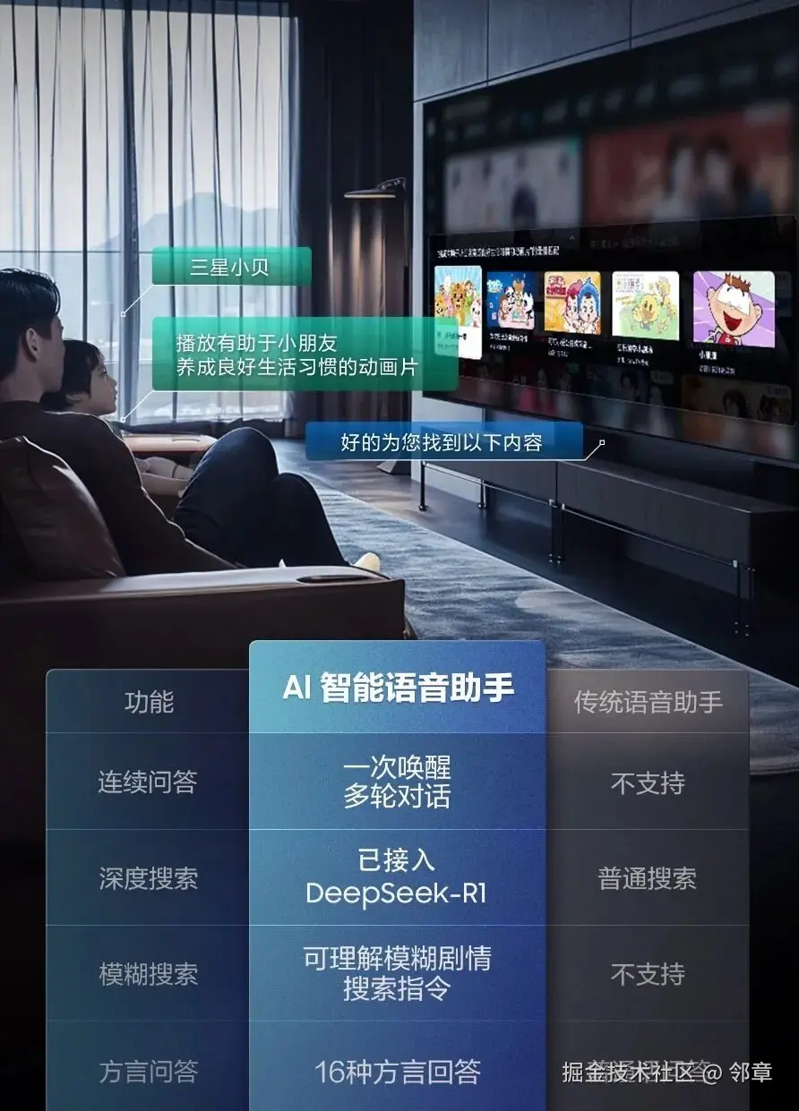作为家庭娱乐核心终端,电视品类的每一处革新,都在持续重塑家庭娱乐体验——从黑白显像到彩色液晶、从高清分辨率到8K超高清莫不如此,人工智能时代,AI为电视及观影体验带来的革新更是空前深刻。