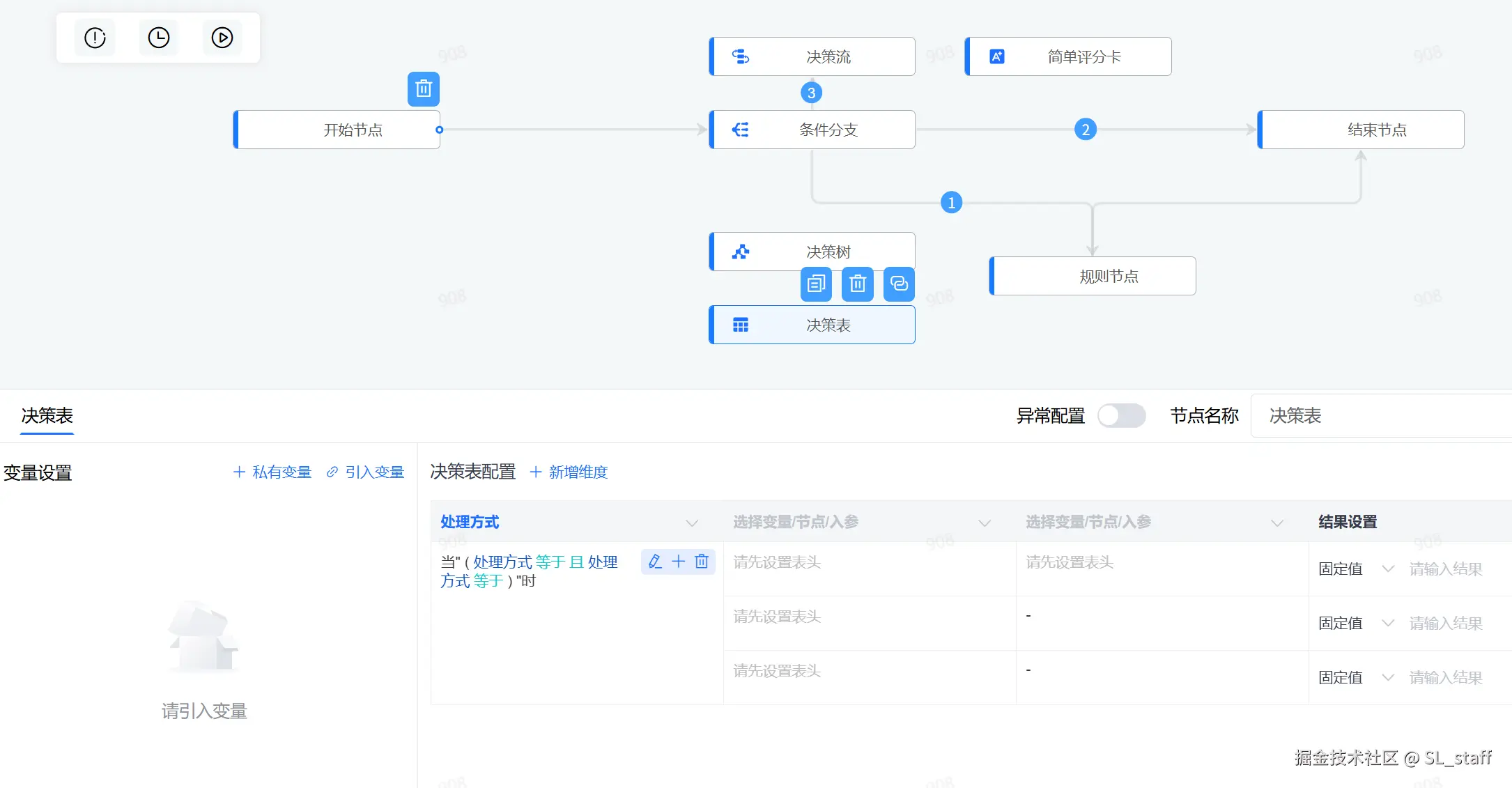 | 4 | 决策表节点 | 条件-动作-优先级映射 | 规则量大、维度多的场景 |