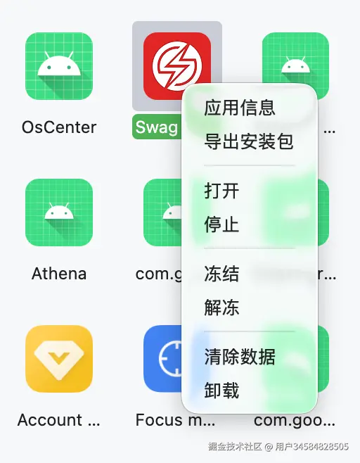 单击查看应用信息,双击打开应用,点击"+"安装apk,右键支持更多操作